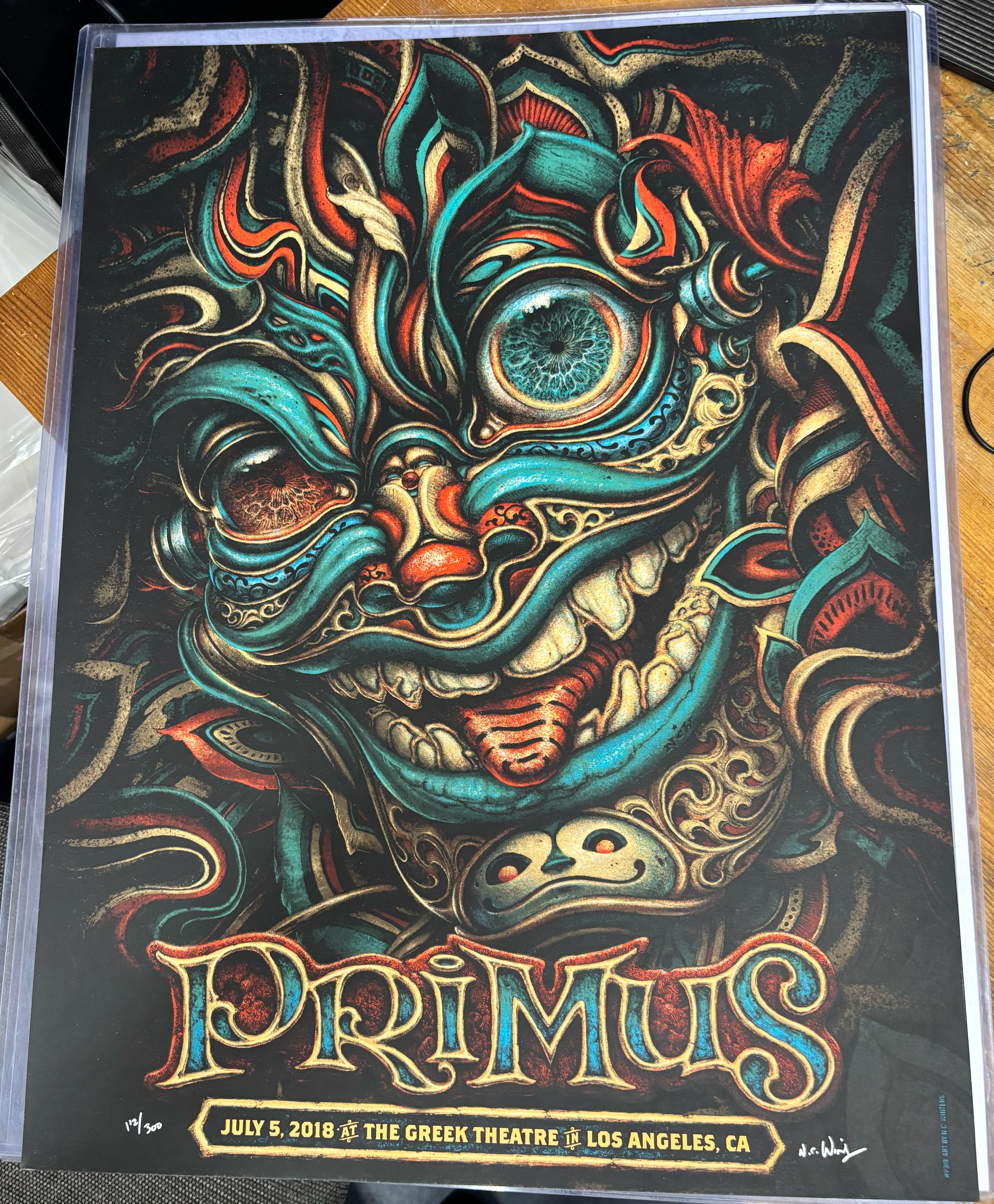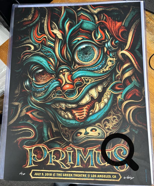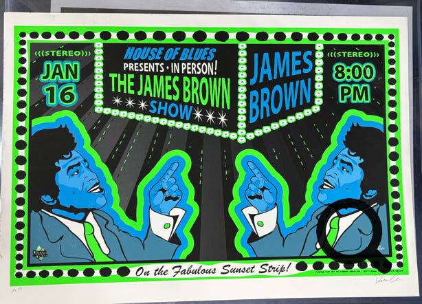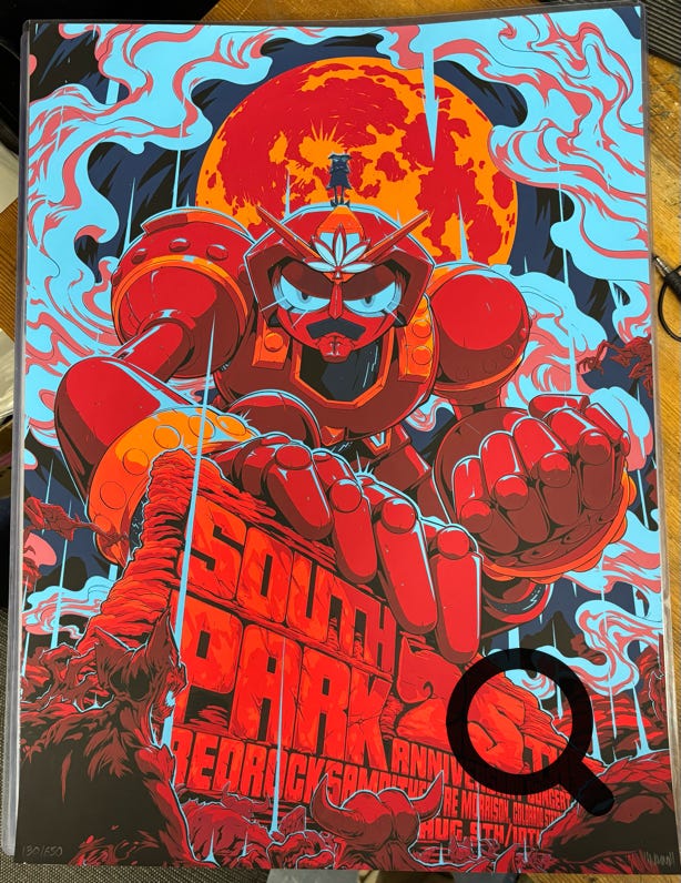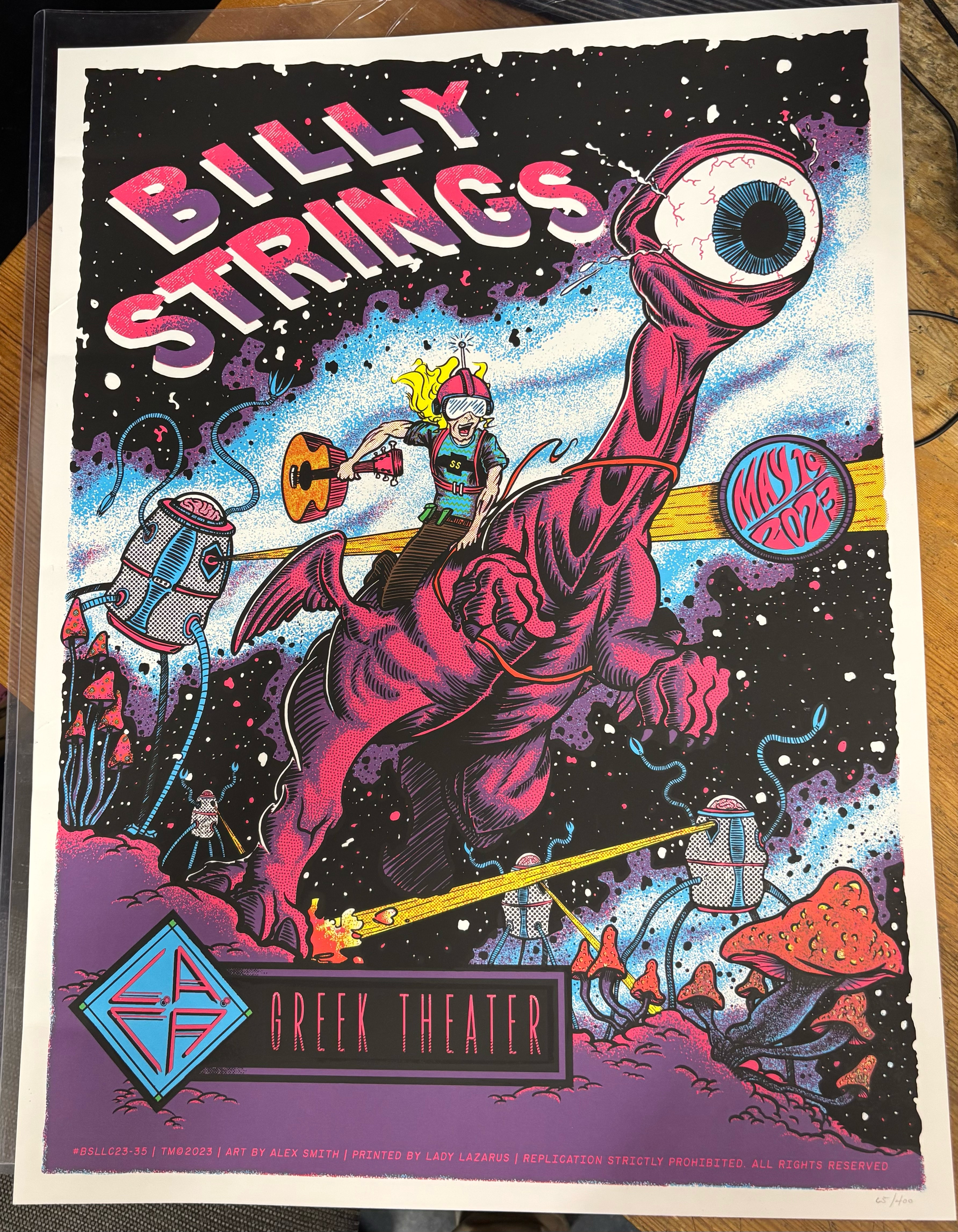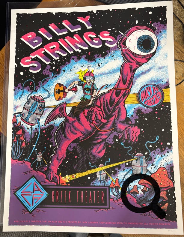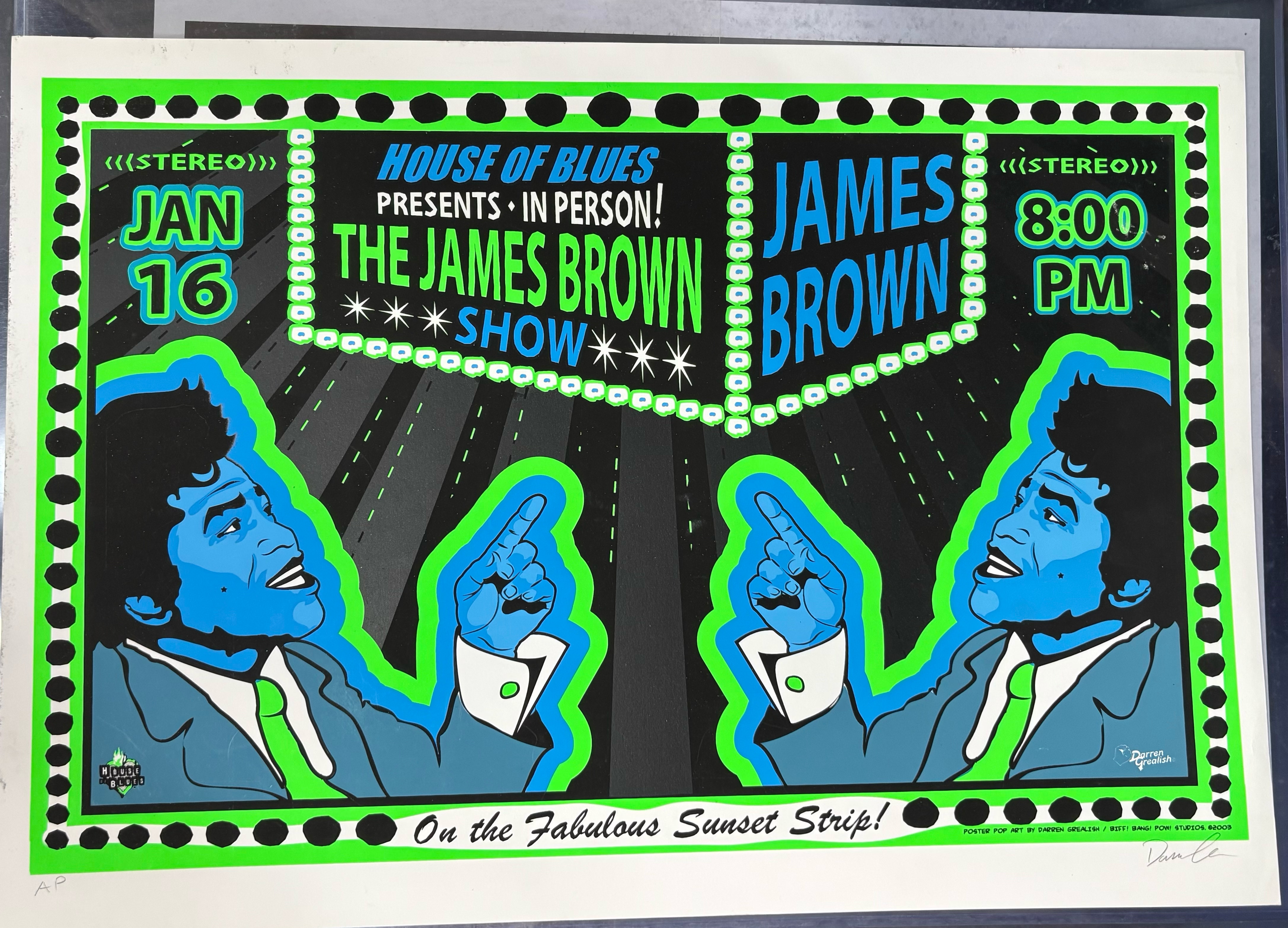 Original screen printed poster, matted and framed (expensive for an unusual shape like this!)