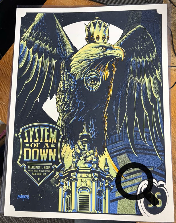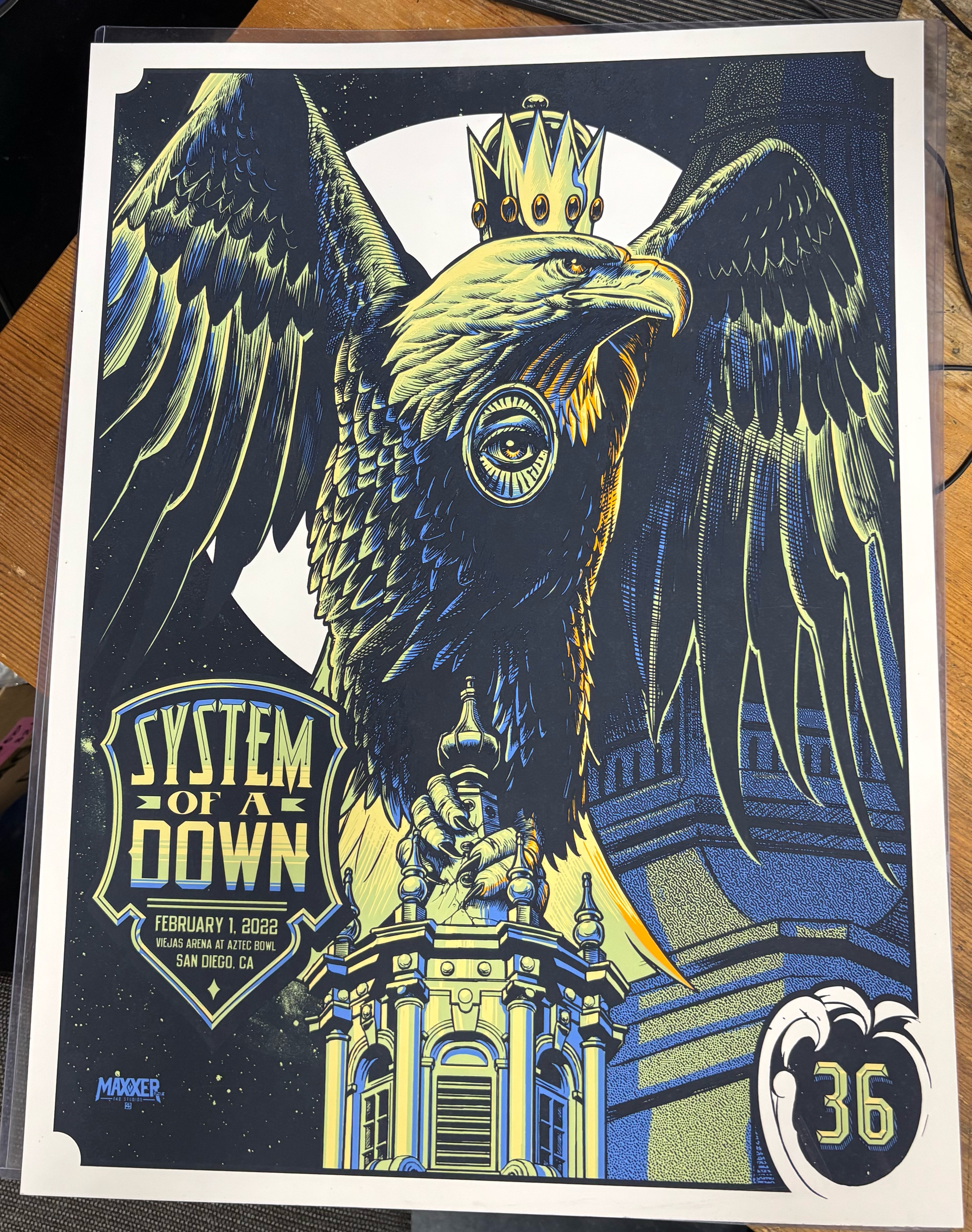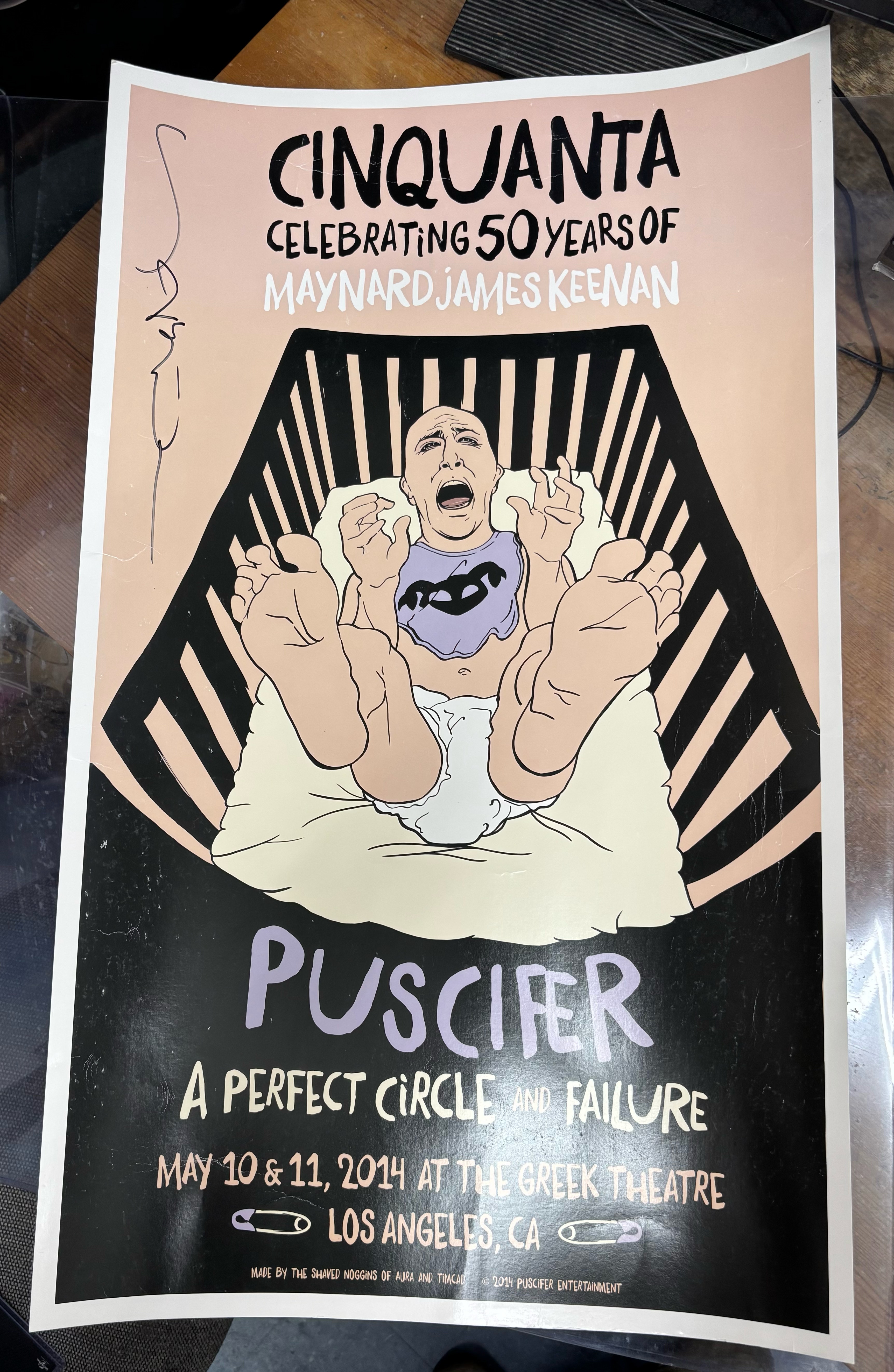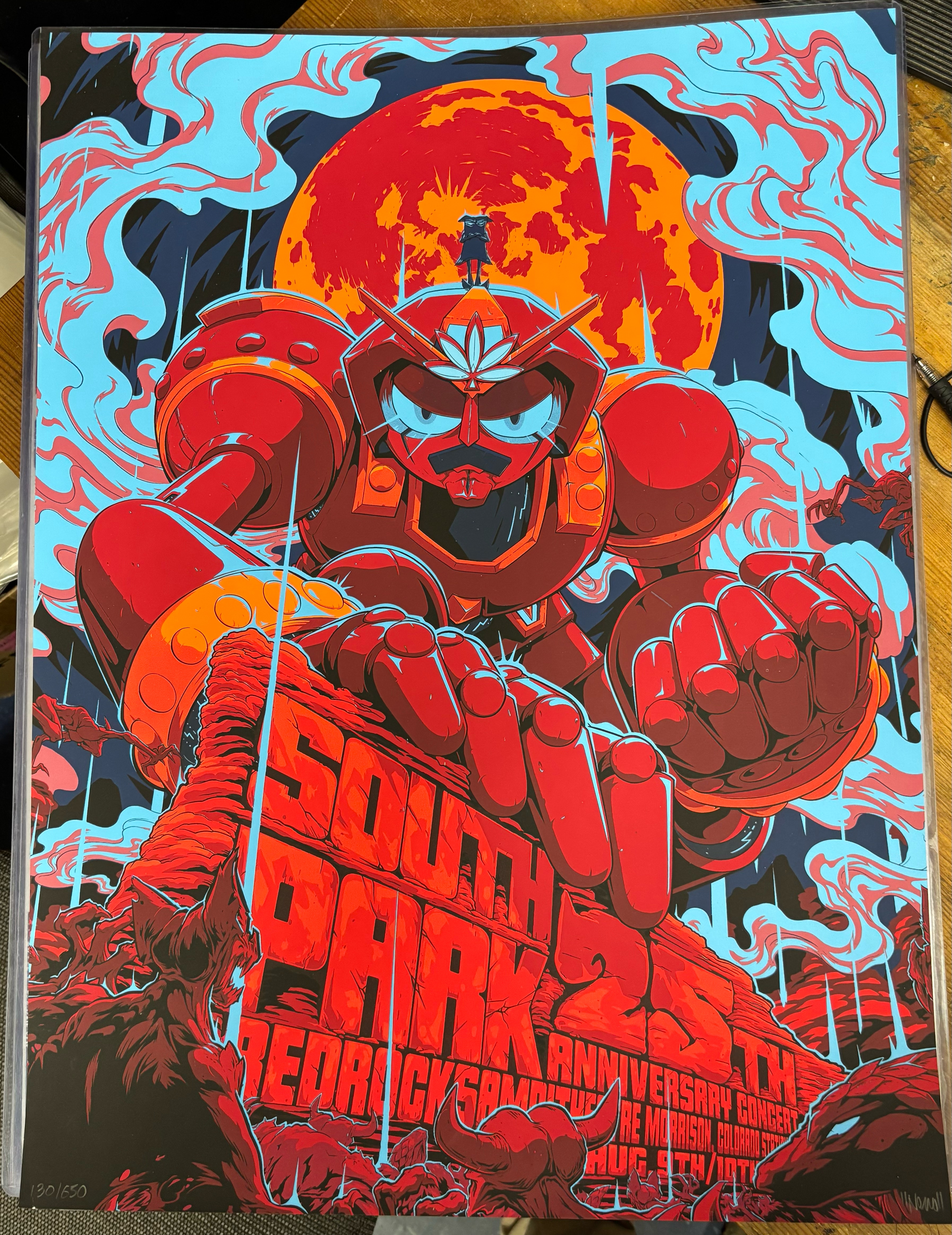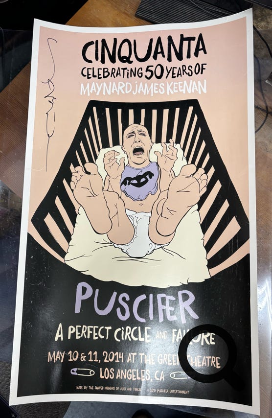 Original screen printed poster, matted and framed (expensive for an unusual shape like this!)